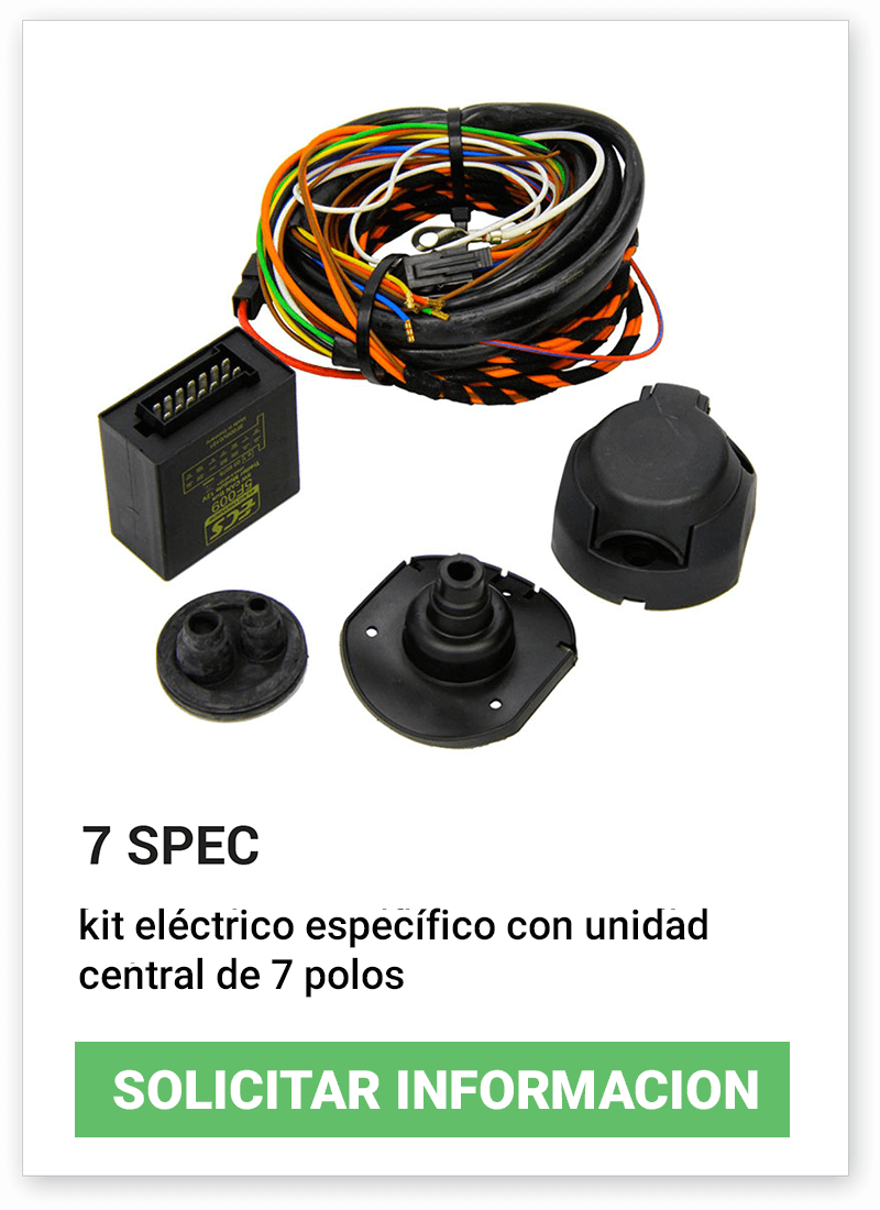 En vehículos sin control de velocidad, y en general para todos los modelos fabricados hasta 2003, el gancho de remolque puede instalarse mediante un cableado sencillo de 7 o 13 polos, sin necesidad de una unidad de control adicional para el correcto funcionamiento del sistema de iluminación del remolque. En nuestra lista de precios se indica claramente el tipo de cableado recomendado para cada modelo de vehículo.