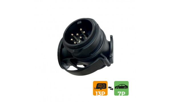 L'adattatore da 13 a 7 poli è uno strumento essenziale per collegare una presa elettrica a 13 poli del veicolo a un rimorchio con presa a 7 poli. Permette una connessione semplice e sicura, garantendo la compatibilità tra i due sistemi elettrici.