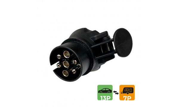 Przejściówka z 7 na 13 styków to element pozwalający na podłączenie przyczepy z 13-stykowym gniazdem do pojazdu z gniazdem 7-stykowym. Zapewnia ona bezpieczne i stabilne połączenie, jak również - przeniesienie zasilania oraz sygnałów potrzebnych do obsługi przyczepy.